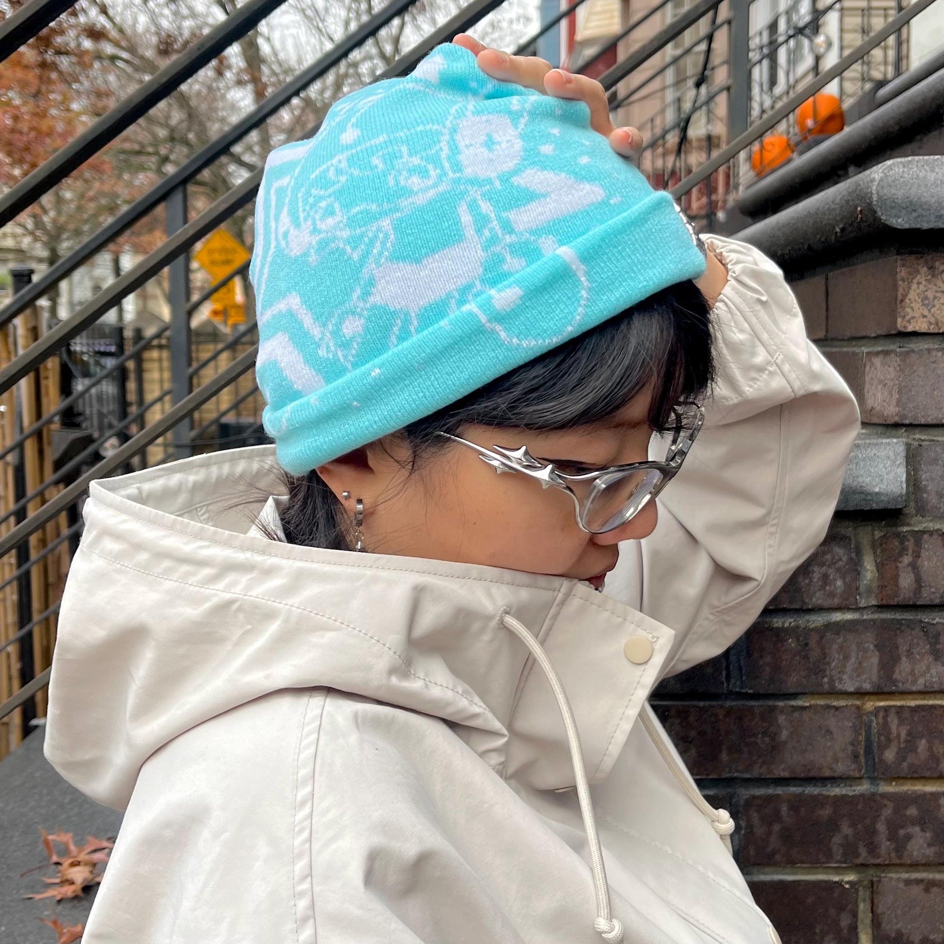 100% Cotton knit beanies featuring Lucky Weinni mascot 160 on the front, and LUCKY WEINNI on the back. Comes in 2 colors, brown and light blue. Perfect to keep ears and back of the neck warm. Can be worn normally, sideways, and folded up, or however you want!