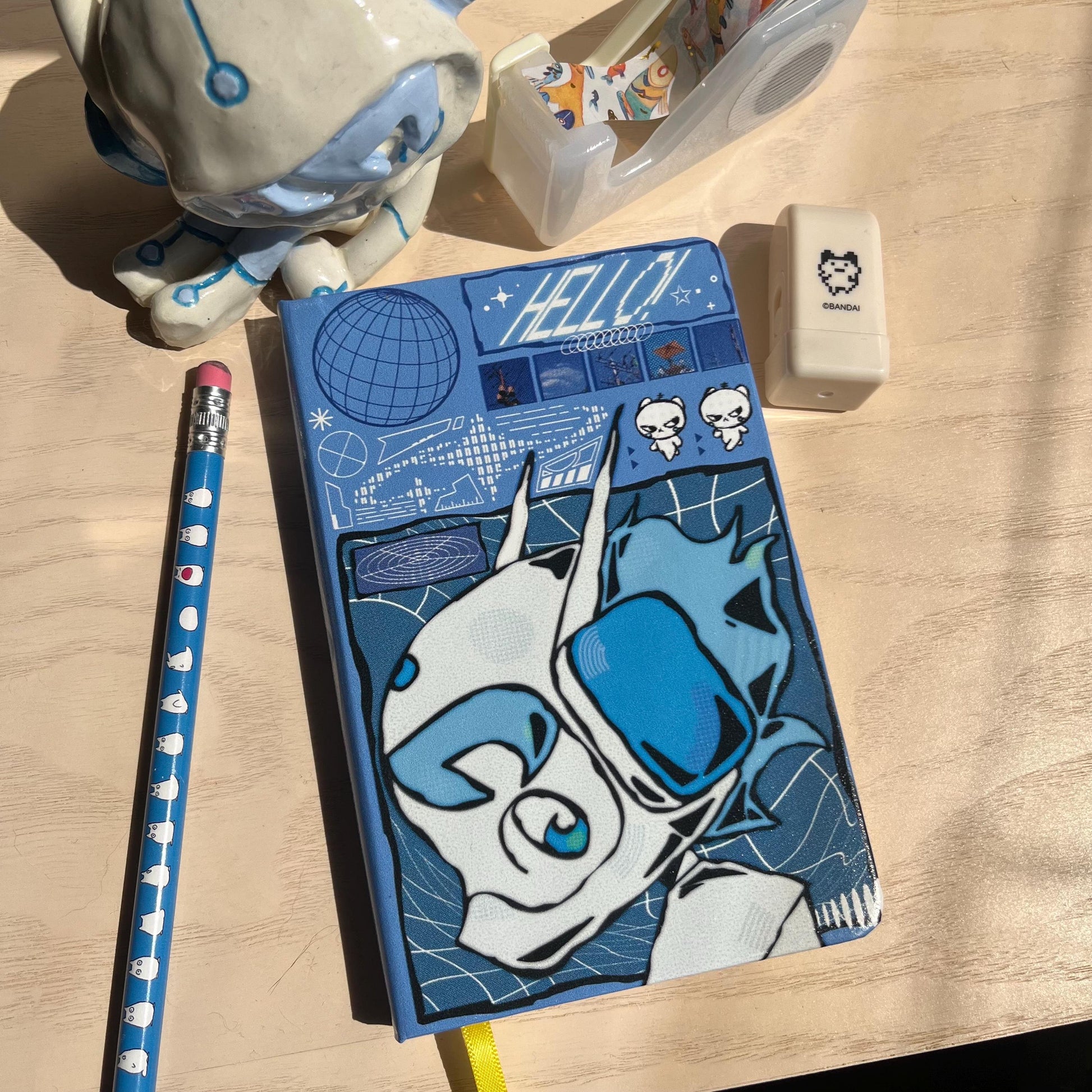 A6 Notebooks featuring Lucky Weinni Mascots 160 and Appo. Two ribbon bookmarks, a strap to keep it closed, and folder in the back. Pages are dotted. 80 sheets / 160 pages.